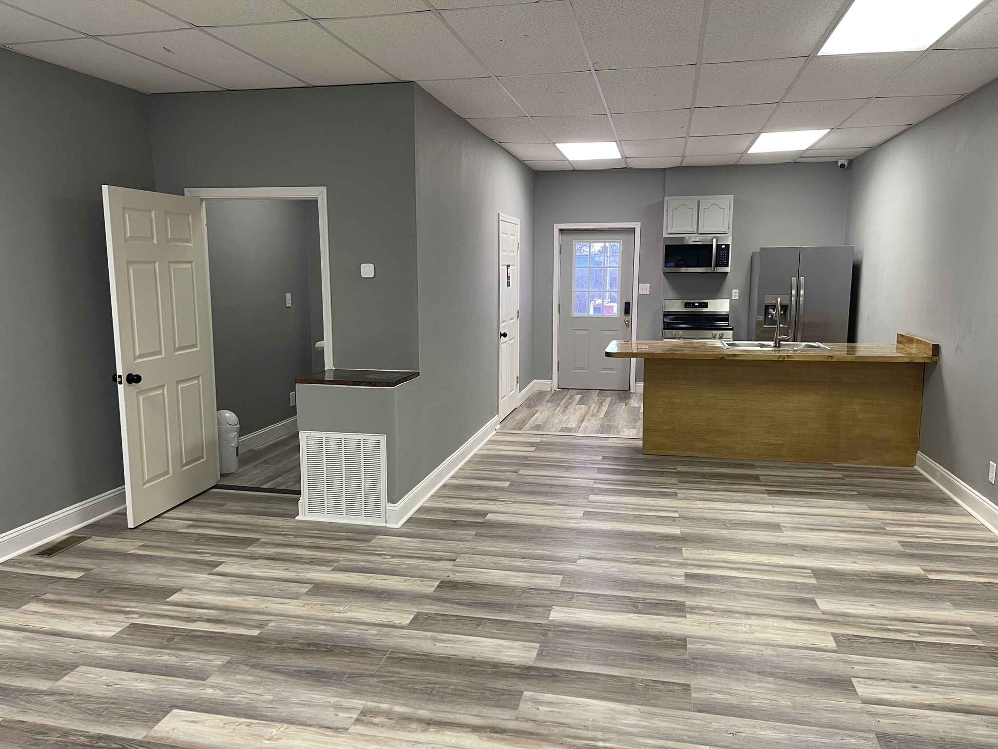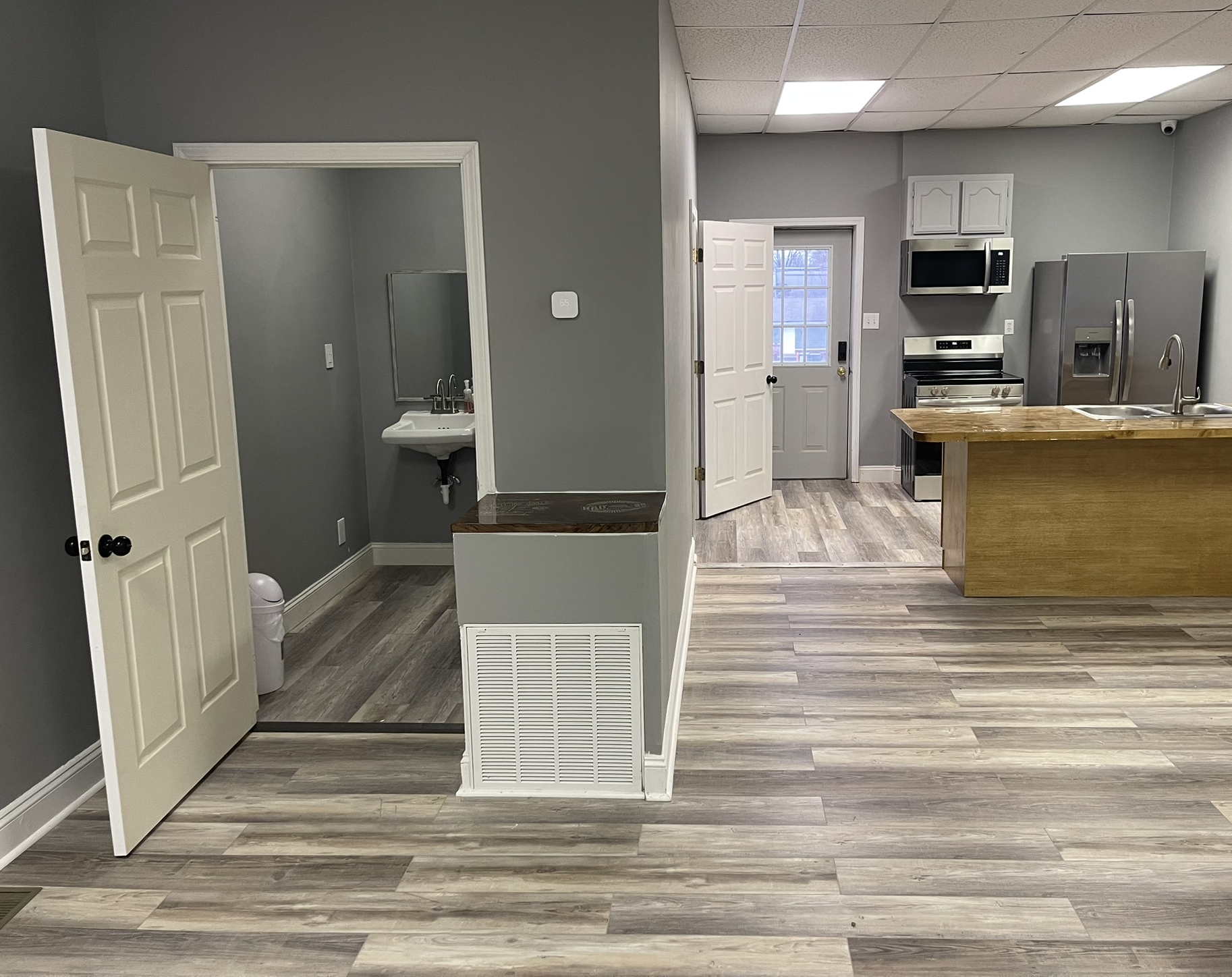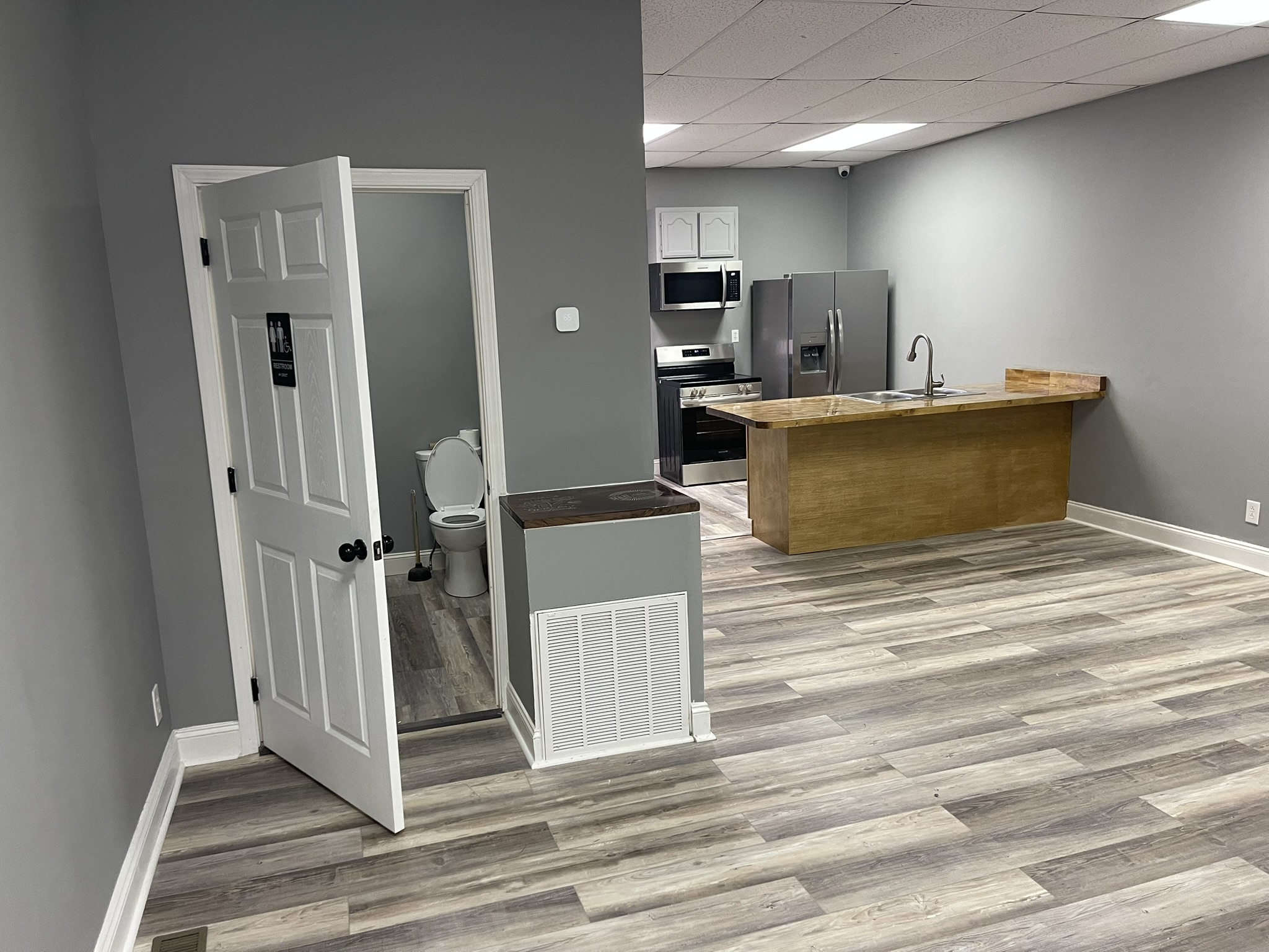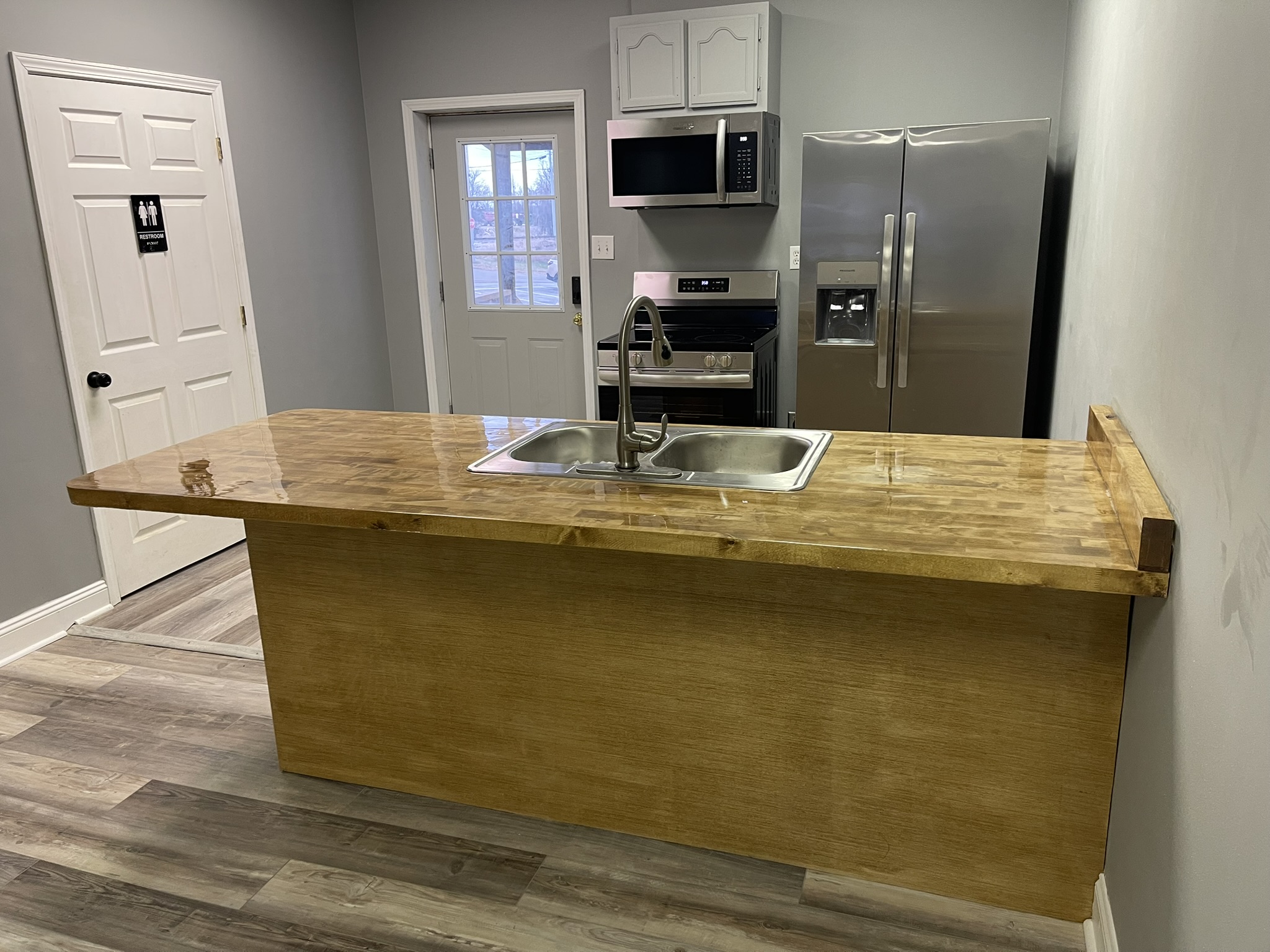 Everything you need to prepare a meal for your event or keep it cool. This event space has a full kitchen with microwave, stove, refrigerator, and sink. Perfect for your event.